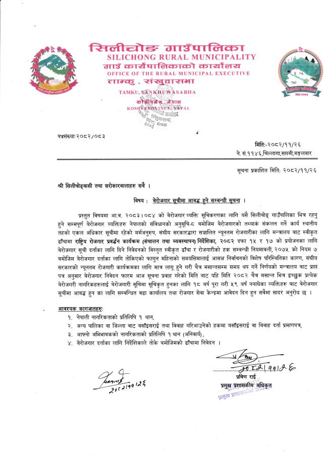 बेरोजगार सूचीमा आबद्ध हुने सम्बन्धी सूचना।