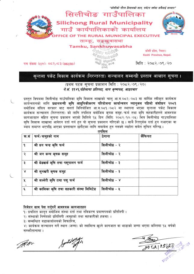 » सुन्तला पकेट विकास कार्यक्रम (निरन्तरता )सञ्चालन सम्बन्धी प्रस्ताव आह्रानको सूचना।