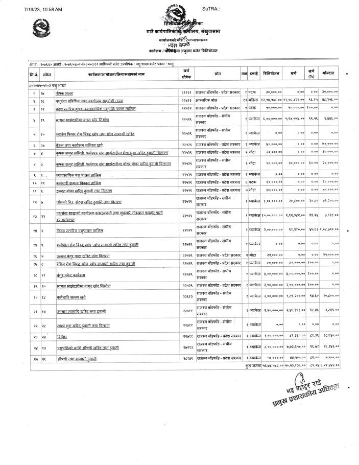 » आ.व. २०७९/०८० पशु शाखाको आर्थिक प्रगित विवरण