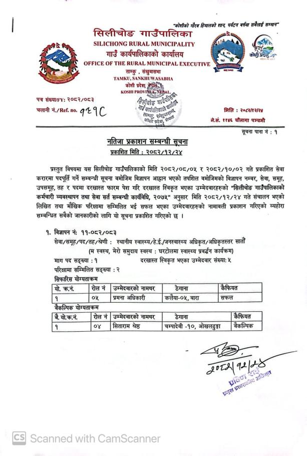 नतिजा प्रकाशन गरिएको सम्बन्धमा