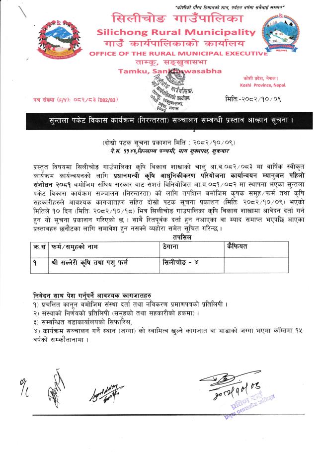 सुन्तला पकेट विकास कार्यक्रम (निरन्तरता) सञ्चालन सम्बन्धी प्रस्ताव आव्हान सम्बन्धी सूचना ।( दोस्रो पटक प्रकाशित)